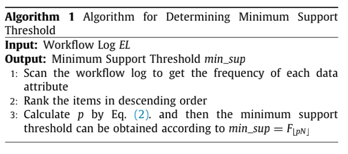 頻繁模式挖掘算法的基礎是設定合適的支持度閾值。然而目前的頻繁模式挖掘算法大多采用人為設定的方法設定最小支持度閾值,顯然這存在明顯的問題。雖然已經有許多研究學者設計了一些自動化設定最小支持度閾值的方法,但這些方法大多基于監督學習或窮舉法,這將會導致算法的效率較為低下。為了解決這個問題,本文提出了一種自動化設定最小支持度閾值的方法,該方法基于數據項的統計分布特征,且不需要訓練數據。設定最小支持度閾值的詳細步驟如算法1所述。