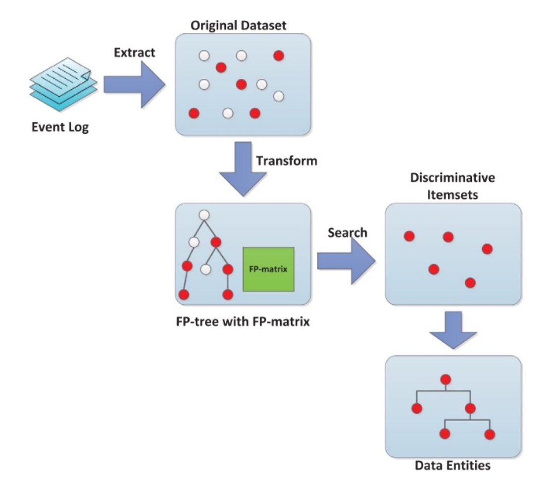 圖1介紹了一種基于頻繁模式的關聯數據發現方法的總體框架,該方法通過對工作流日志進行分析,揭示出數據中的關聯關系,區分出數據間的重要程度。