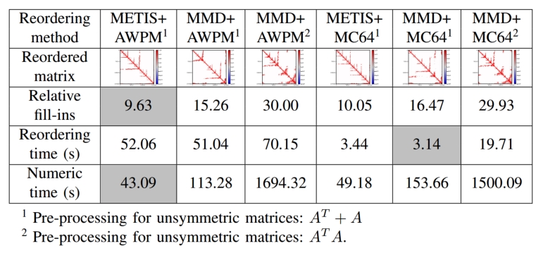 在稀疏LU分解的預處理階段采用不同的行列重排序方法會對性能有不同的影響(如圖1)。對此,Ganqu Cui等人結合支持向量機和神經網絡提出了一種基于AI來分析并選擇最佳重排序方案的算法。但目前所有現有的基于AI的策略通常都是從現有方法中的選擇最佳替代方案。利用半監督或無監督學習為矩陣生成特定的最優重排序方法在未來是非常有前途的方向。