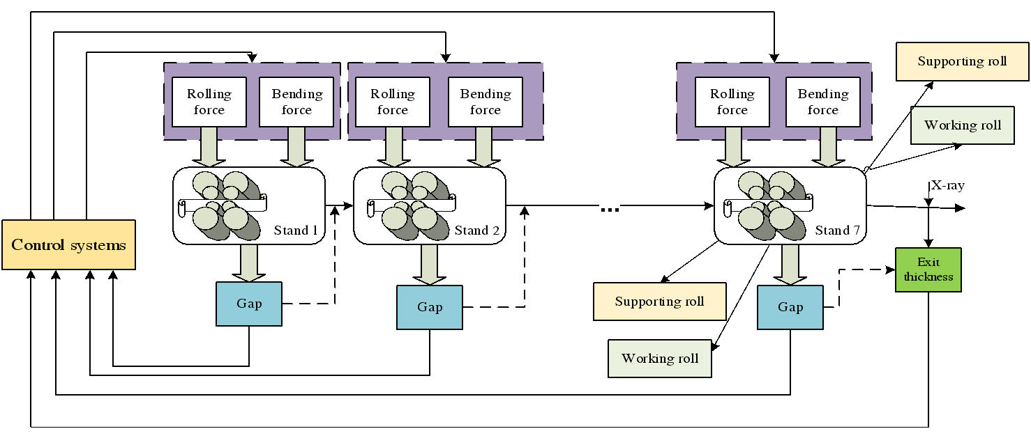 以帶鋼熱軋過程為例,該故障是由F4輥隙控制執行器故障引起的。故障發生后,F4輥隙采樣受到影響,隨后,由于反饋控制的作用,后續機架的輥縫和軋制力會發生變化,從而影響最后一機架的出口厚度。作為一種與質量有關的故障,故障發生在過程運行20s后,即從2000個采樣點檢測到故障出現。