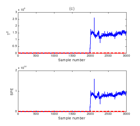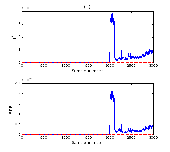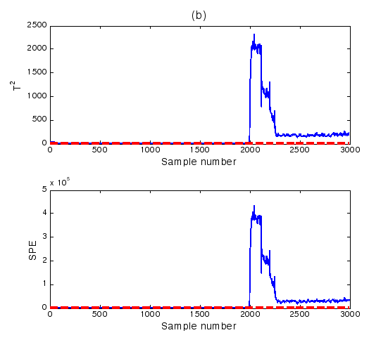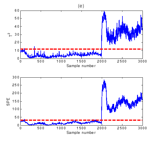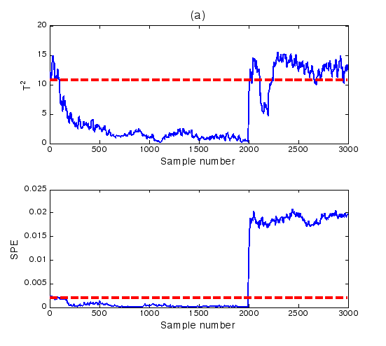 對于實時采樣數據或者在線操作過程數據到來時,對比統計量與控制限的大小,若超過控制限,則系統判定為故障發生,否則系統正常。