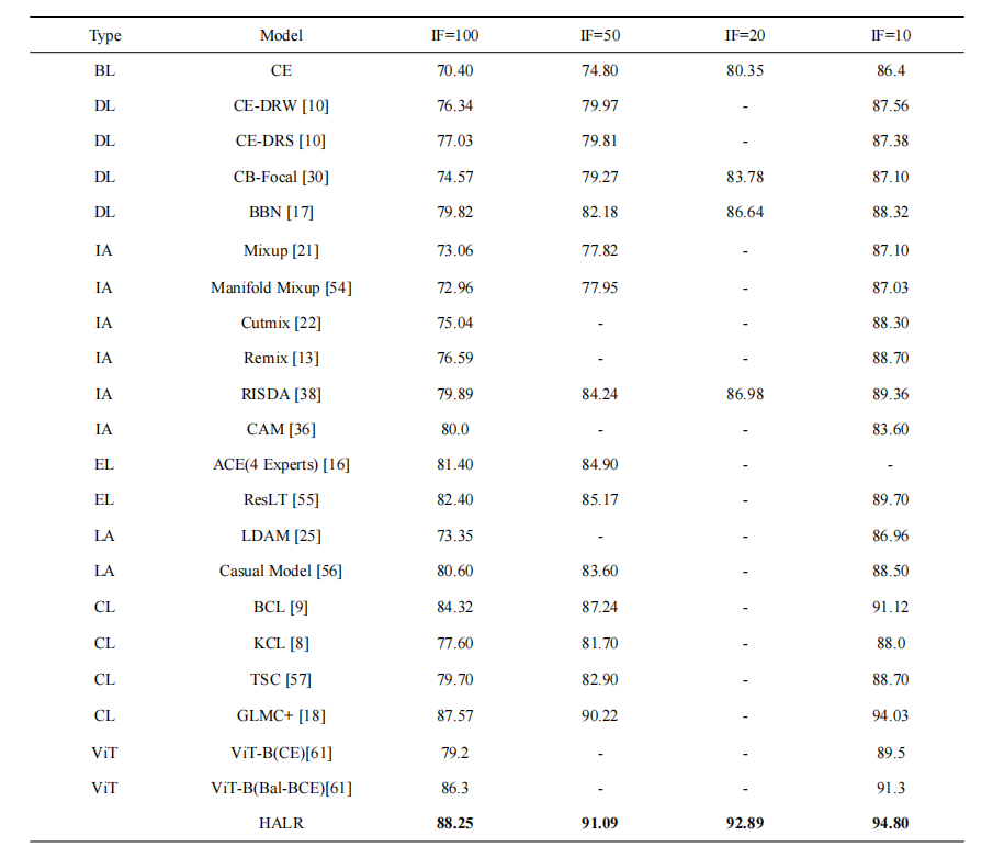 本文旨在解決長尾視覺識別任務中數據信息挖掘不足和模型置信度偏差的問題,提出了一種超圖特征增強和自適應邏輯調整的雙分支網絡,有效提升了模型的性能。超圖特征增強方法將視覺長尾學習從傳統的歐氏空間擴展到非歐氏空間。使用超圖特征作為輔助知識,有助于模型挖掘圖像中隱含的上下文空間語義信息。實驗表明,該方法在面對有限樣本時增強了模型對尾部類的理解。自適應logits調節函數為模型提供了動態校準置信度的能力,從而緩解頭類偏好問題,靈活地修正分類偏差。在CIFAR10/100-LT等4個基準數據集上的廣泛實驗驗證了HALR顯著提高了長尾圖像分類性能,特別是在解決尾類樣本稀缺問題方面表現出巨大潛力。在不平衡因子為10和100的CIFAR100數據集上,HALR分別取得了88.25%和58.27%的最佳top-1測試精度。
