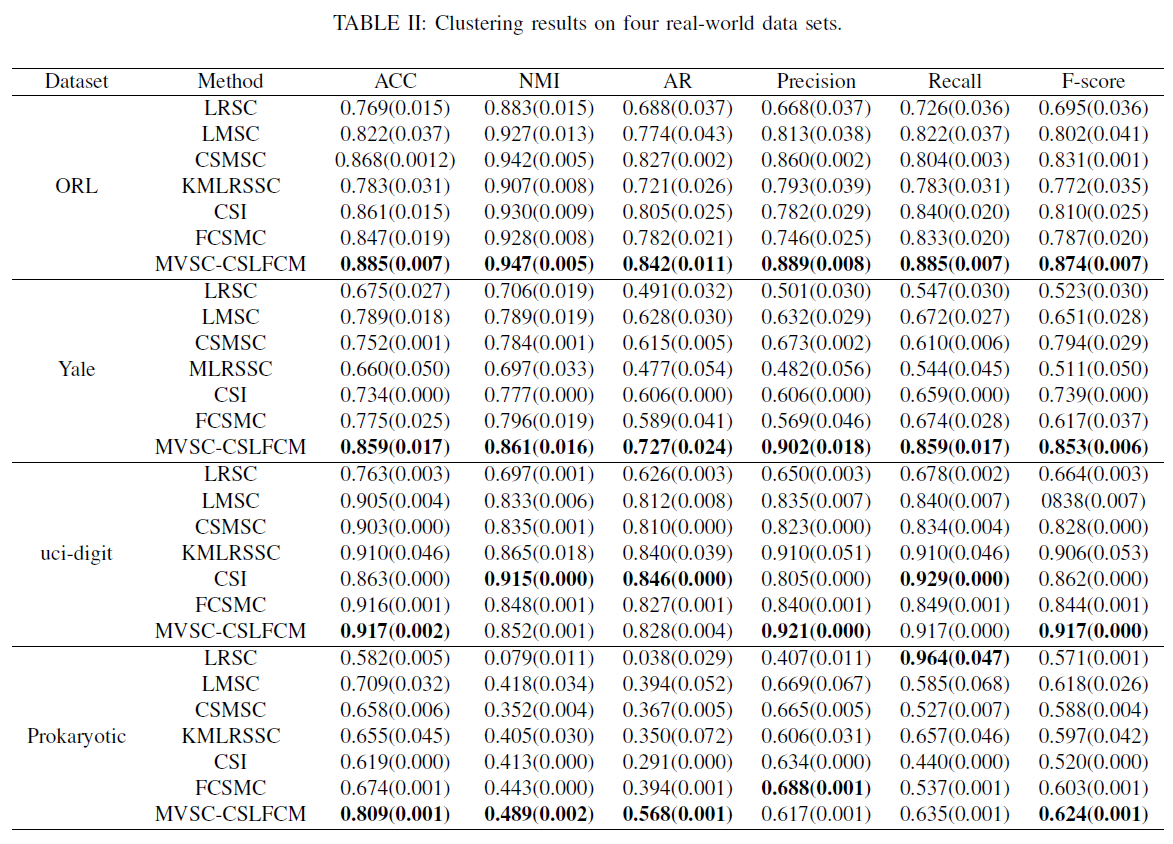 (1)通過同時考慮多個視圖的一致性與互補(bǔ)性信息,我們提出的隱因子提取算法能夠幫助MVSC-CSLFS獲取更加緊湊且完備的隱表示,且能將隱表示中這些耦合的信息分離,使隱表式有更為明確的語義信息。