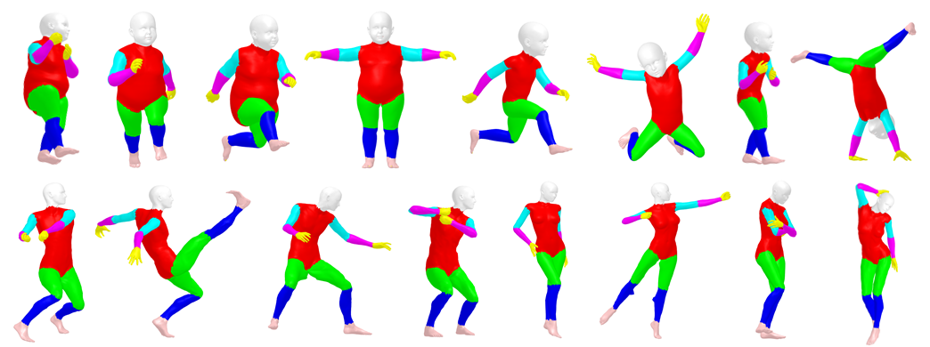 圖3 本文方法在KIDS和TOSCA數據集上的分割結果
