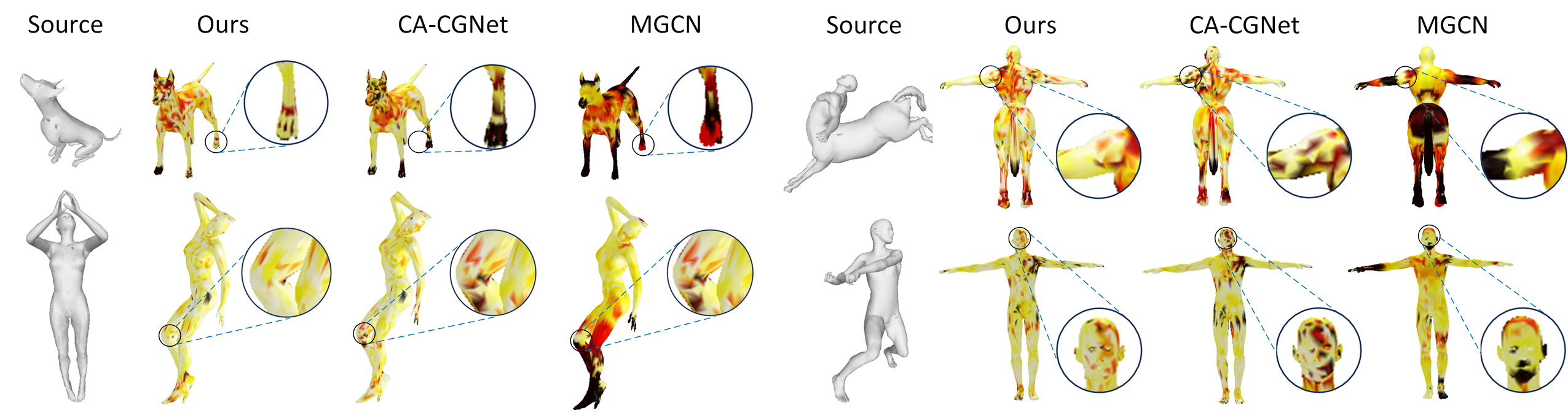 圖5 不同方法中人體模型和非人體模型測地線誤差可視化