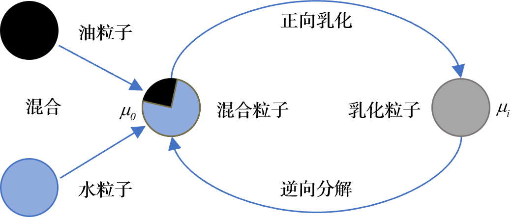 海面溢油污染通常包括擴散過程和風化過程,風化過程中乳化階段產生的油水乳化物的流變性會發生變化,隨著時間的推移直接影響其擴散過程。如圖2所示,將Rasmussen模型中乳化反應視為平衡反應,即