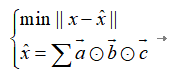 Step2,張量分解。本文采用連續(xù)rank-1的CP分解方法,即每次分解用秩為1的張量來(lái)擬合原始張量,然后將原始張量與擬合后的張量做差得到剩余張量,對(duì)剩余張量再繼續(xù)執(zhí)行秩為1的CP分解,直到達(dá)到迭代次數(shù)或連續(xù)2次分解誤差變化不大即可停止,其中誤差計(jì)算如下所示: