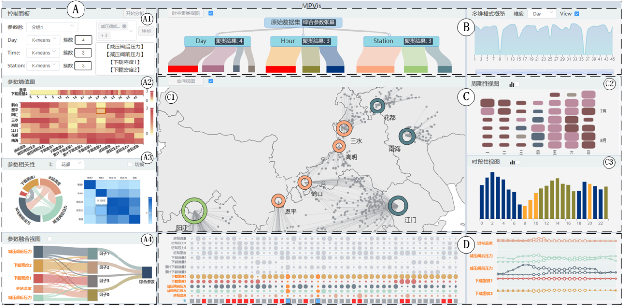 面向成品油管道歷史運(yùn)行的多參數(shù)數(shù)據(jù),本文提出一種基于多參數(shù)融合的張量分解方法,用于提取歷史數(shù)據(jù)中蘊(yùn)含的時(shí)空模式,并從多參數(shù)分組融合、時(shí)空模式提取及可視化、原始多參數(shù)對(duì)比分析等角度設(shè)計(jì)了可視化系統(tǒng)MPVis。該分析方法及分析流程可以進(jìn)一步應(yīng)用到其他更廣泛的工業(yè)過(guò)程領(lǐng)域,為多參數(shù)綜合表征的時(shí)空模式提取與分析提供了有力支持。