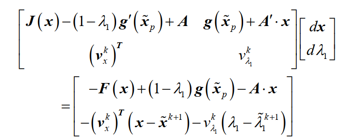 同時,為了更好地保證收斂性,我們采取了弧長法對同倫方程的解曲線進行追蹤。該方法主要分為預測和校正兩個階段。其預測階段的需要求解的方程如下: