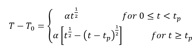 穩(wěn)態(tài)激光輻照會(huì)導(dǎo)致油頁巖表面溫度升高,將油頁巖看作理想的半無限傳導(dǎo)介質(zhì),引入熱學(xué)參數(shù)矯正因子a,建立了油頁巖表面溫度T的演變方程為: