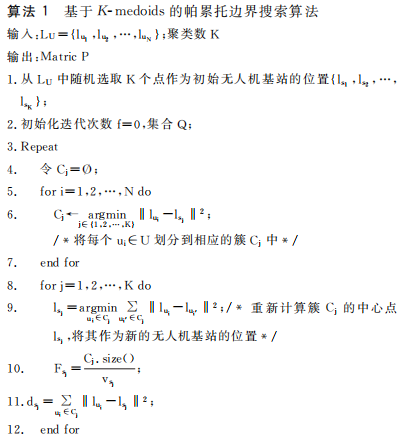 對(duì)于上述的多目標(biāo)優(yōu)化模型,我們提出了一種基于K-Gmedoids的帕累托邊界搜索算法進(jìn)行求解,具體優(yōu)化算法為: