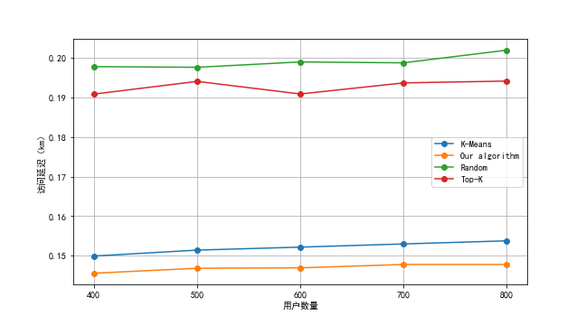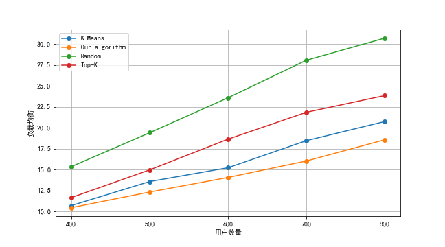 圖2 隨著用戶數(shù)量不斷增加,不同方法的性能對(duì)比。