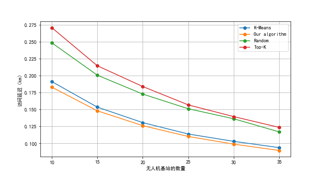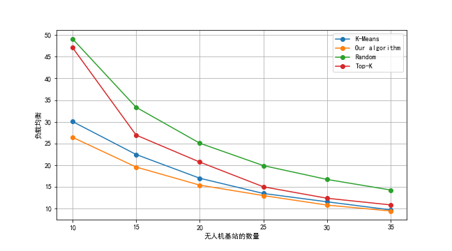 圖3 隨著無人機(jī)基站數(shù)量不斷增加,不同方法的性能對(duì)比。