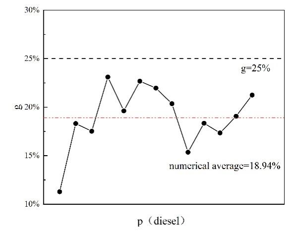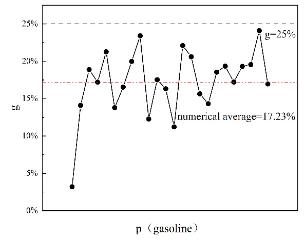 通過分析具有不同設定差距值 g 的原油調和方案,當設定差距值 g = 5% 時,參與調和的原油種類較少,大多數原油調和方案僅根據實時原油購買價格調整不同原油類型在調和過程中的比例,很少替換新的原油類型。在這種情況下,調和原油的性質波動最小且最穩定。當設定差距值 g = 15% 時,參與調和的原油種類明顯多于 g = 5% 的情況。原油調和方案頻繁調整,參與調和過程的原油種類和比例不斷變化,調和原油的性質在一定范圍內頻繁波動。在 g=25% 時,參與調和過程的原油種類略多于 g=15% 的情況,但原油調和方案的變動更大,即不同調和方案的變動更多,原油種類和比例的變動也更多,導致調和原油性質的波動最為顯著。這表明,我們可以通過調整設定值 g 的大小來影響調和原油性質的波動范圍,從而穩定調和原油的性質。設定值 g 越小,性質波動的范圍越小,調和原油的性質越穩定。