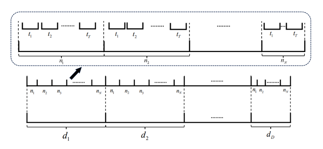 是基于事件表示法劃分出的事件槽,其中定義區間的事件只可是(1)原油的到達和/或(2)訂單要求的調和配方發生變化。每個事件槽中的生產方案是相同的,即待處理的目標調和原油不變。然而,事件槽中原油的調和方案可能會發生變化,例如,事件槽