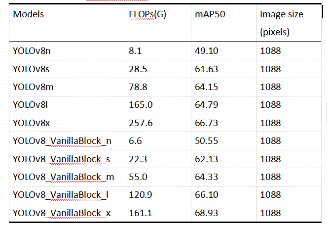 表2 YOLOv8_VanillaBlock與YOLOv8準確率及計算量對比