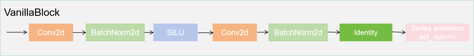 我們借鑒Vanillanet的思想設計出了VanillaBlock。圖1展示了我們所設計的VanillaBlock的結構,其由兩個卷積層和兩個池化層組成,中間有一個激活函數。VanillaBlock模塊的最后一個組成部分是由n個激活函數組成的序列激活函數。