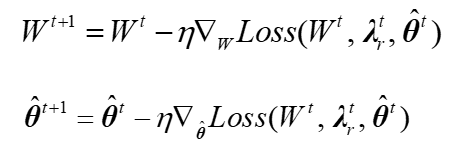 在未知的情況下,訓練機理正則化部分的問題變成了半監(jiān)督學習任務。具體實現(xiàn)方法為通過最大化關于自適應權重的損失并最小化關于網絡權重和參數估計的損失來獲得一致性參數估計: