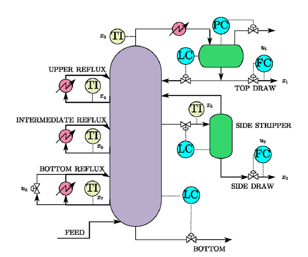 生產過程的效益包括許多綜合因素,其中產品的銷售占主要部分。 產品的銷售與產品的質量有關,例如產品中每種組分的比例。 因此,在設計控制策略時,通常將每個組分或可以表征這些組分的其他變量(例如壓力和溫度)用作控制變量。 但是,這種簡單的考慮忽略了額外的成本,例如能耗和污水處理。 同時,這些額外成本與系統的輸入或輸出變量有關。 因此,在設計系統優化策略時應考慮這一部分。
