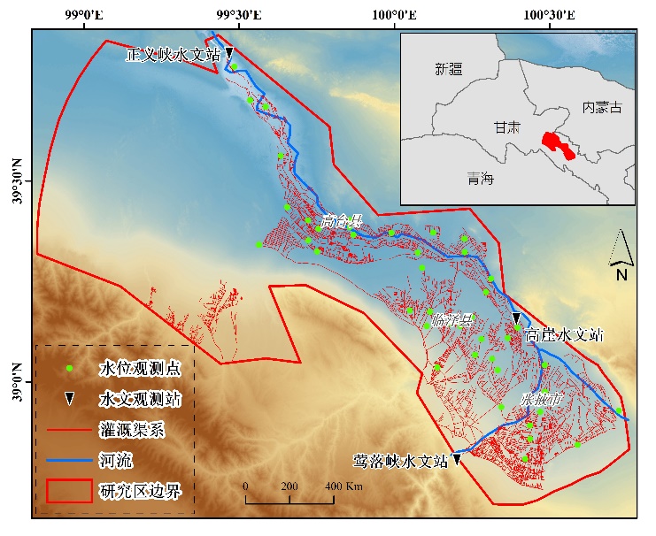圖1. (a) 黑河流域中游;(b) 地下水系統(tǒng)循環(huán)過程