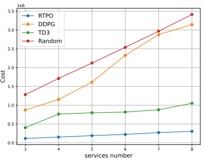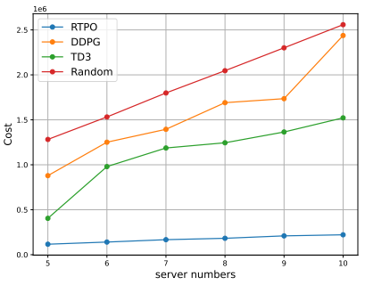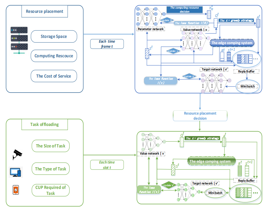 本文中,我們考慮了邊緣計算系統(tǒng)中的動態(tài)的服務(wù)放置和任務(wù)卸載問題,這一問題具有挑戰(zhàn)性??紤]到不同服務(wù)的異構(gòu)性和邊緣服務(wù)器有限的存儲空間和計算資源,為了在長期內(nèi)最小化服務(wù)成本,采取了不同的時間尺度來分別處理服務(wù)放置和任務(wù)卸載。我們提出了一種基于P-DQN和D3QN強(qiáng)化學(xué)習(xí)的RTPO算法,通過該算法可以動態(tài)地處理服務(wù)放置和任務(wù)卸載問題。此外,通過模型實驗分析了影響算法收斂性的參數(shù),并通過與基準(zhǔn)算法的比較,驗證了該方法的有效性。