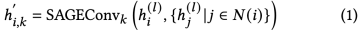 表示標準 GraphSAGE 聚合操作。自適應消息過濾通過門控機制對每個頭的輸出進行篩選,動態保留必要信息,優化信息傳播。