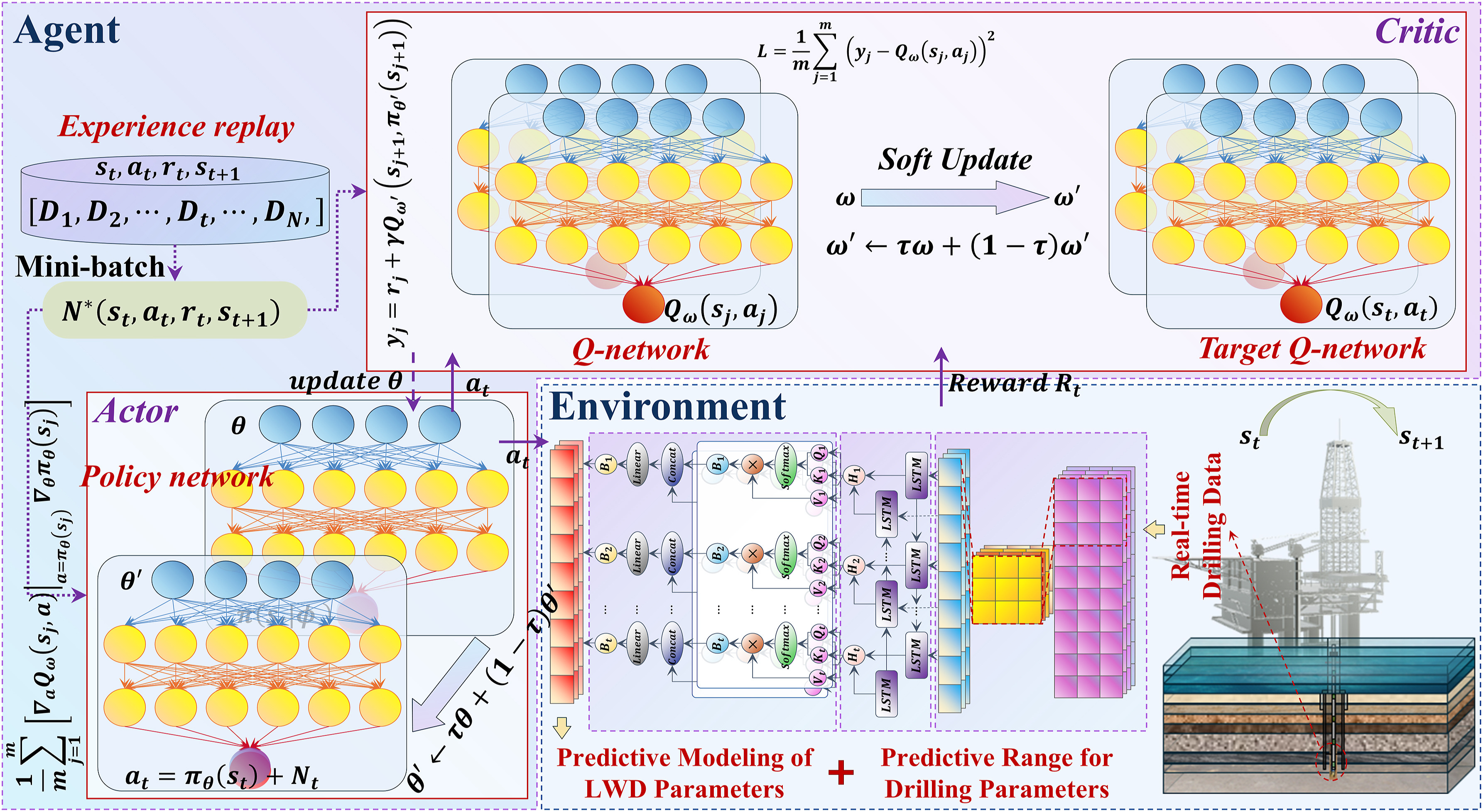 在全球能源轉型的背景下,優化深水油氣鉆井參數對確保安全和提高效率至關重要。傳統的鉆速經驗方程基于簡化的物理假設,無法全面描述復雜的鉆井過程。盡管神經網絡模型能夠捕獲復雜的非線性關系,但其不透明性限制了模型的可解釋性和泛化能力。此外,僅依賴隨鉆測井參數進行鉆井參數優化存在固有局限性。數據獲取通常在鉆井活動發生后,導致實時參數調整無法達到預期效果。這些方法未充分考慮鉆井作業中的滯后效應,亦未能動態適應不同鉆進階段的需求。鉆井過程中的多目標優化還面臨地質環境復雜性和不確定性的挑戰,使得優化問題高度動態且非線性。傳統算法難以及時響應地層變化,實時調整鉆井參數,導致計算效率低下和響應能力不足。這使得同時實現提高鉆速與優化能耗等多個目標變得具有挑戰性。
