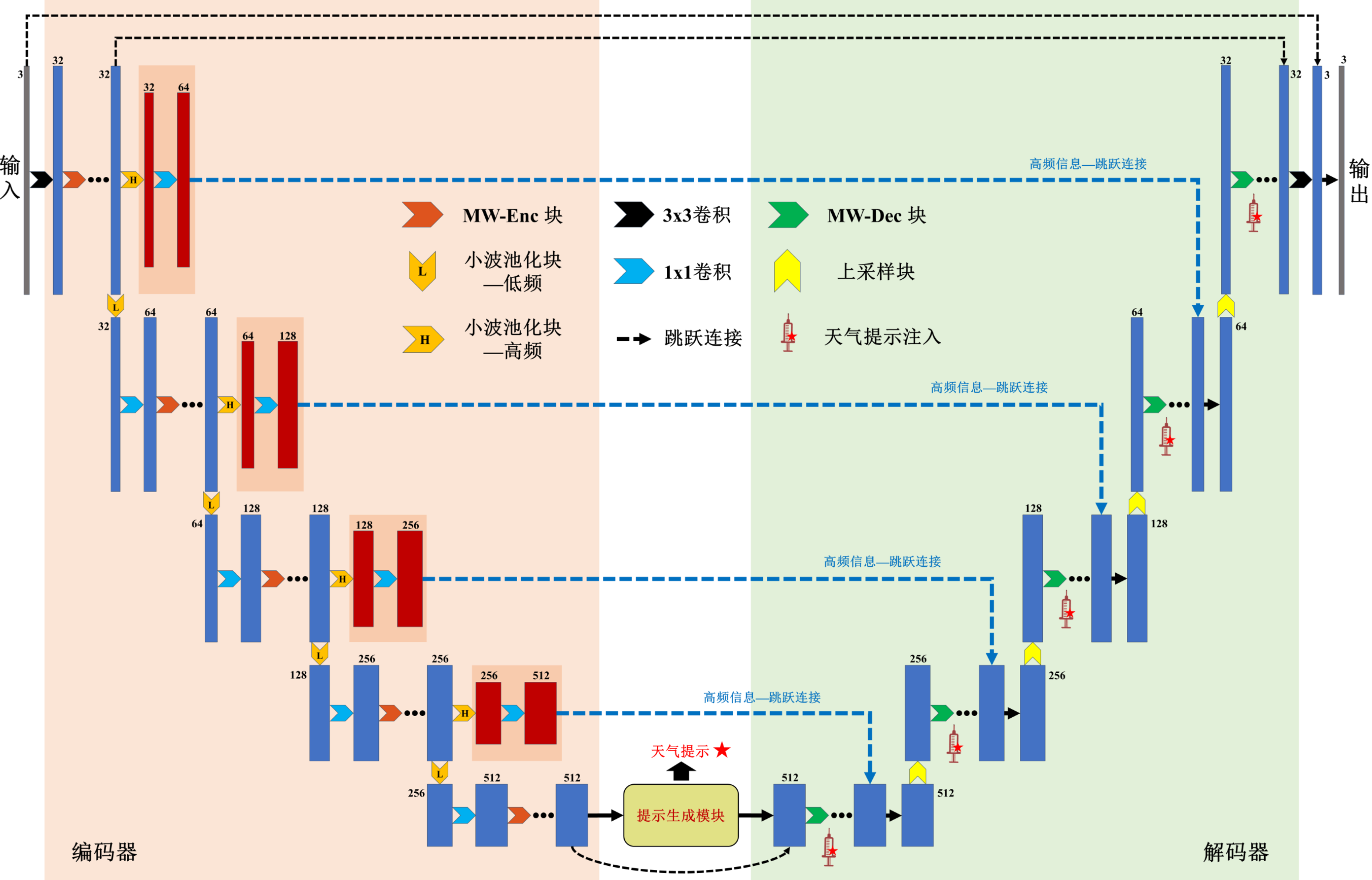 中文題目:多天氣恢復(fù)任務(wù):一種基于提示引導(dǎo)的高效卷積架構(gòu)