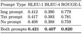 本文針對(duì)四種提示數(shù)據(jù)的輸入情況進(jìn)行了消融實(shí)驗(yàn)。實(shí)驗(yàn)結(jié)果表明,當(dāng)同時(shí)輸入兩種提示類型數(shù)據(jù)時(shí),模型輸出的結(jié)果明顯好于其它提示類型輸入的情況(如表3所示)。