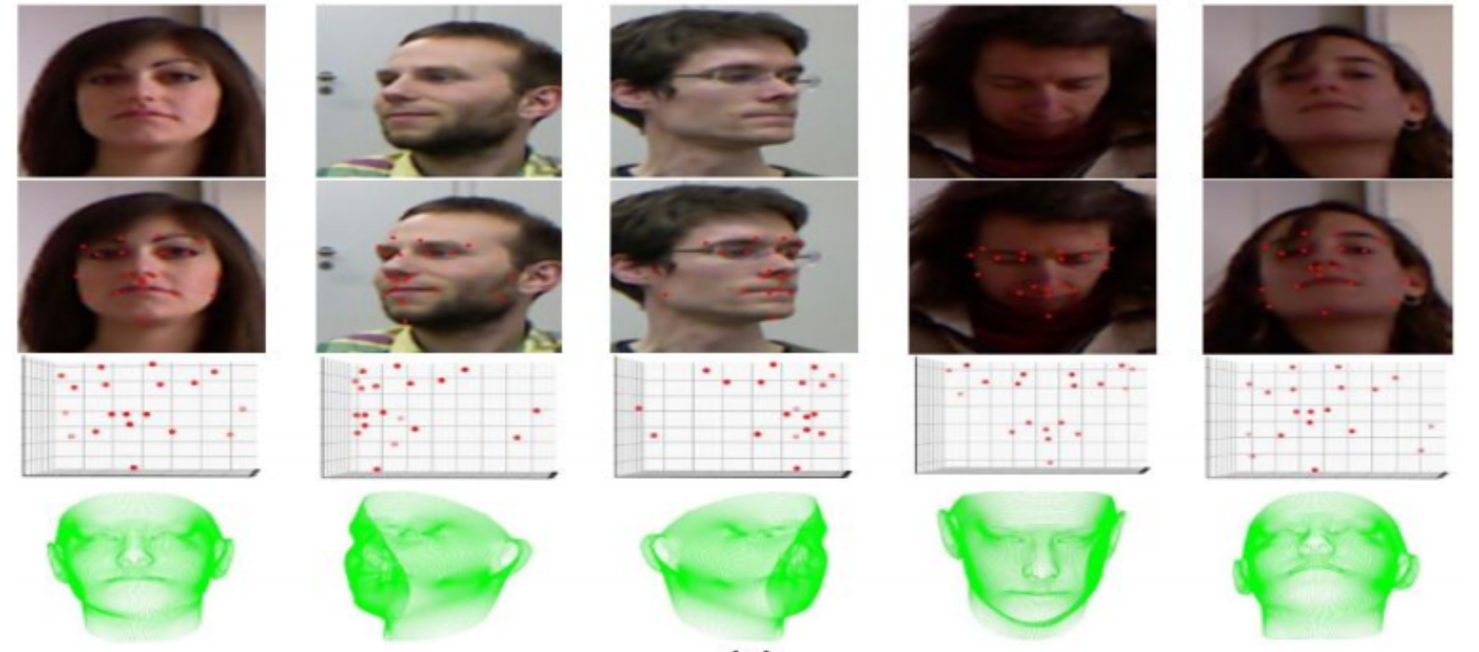 頭部姿態估計是計算機視覺的一個重要任務,已廣泛應用于各個領域,如人機交互、視頻監控、虛擬現實、面部表情識別,凝視估計和行為理解等。頭部姿態估計方法主要可分為傳統的估計方法和基于深度學習的估計方法。早期傳統估計方法往往采用外觀模板方法,估計結果精度較低,魯棒性較差。近年來,利用卷積神經網絡強大的特征提取能力,采用深度學習的方法來估計頭部姿態。雖然已經取得了顯著的改進,但由于圖像中二維和三維的相互關系信息挖掘難度大,導致兩者之間的精確映射關系難以建立,使得從二維空間到三維姿態的估計難以獲得良好的結果。