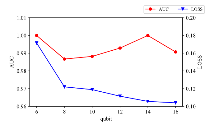 圖6 多量子比特糾纏系統(tǒng)的LOSS和AUC