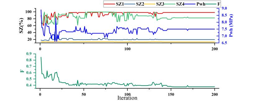 ,對應的開度方案下,單層段最大配注誤差為10.09%,四層段累計配注誤差為10.74%,最優方案對應的適應度