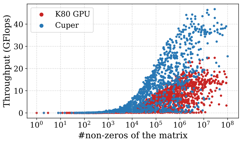 圖 4:K80 GPU和Cuper在2,757個評估矩陣上的吞吐量對比