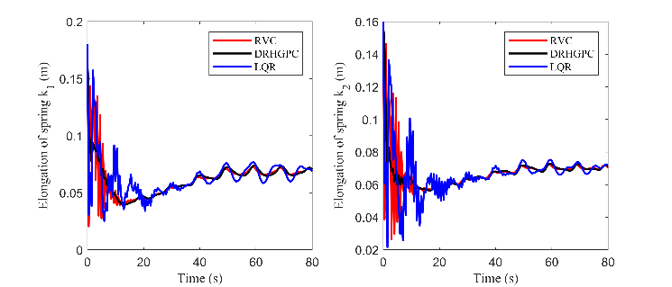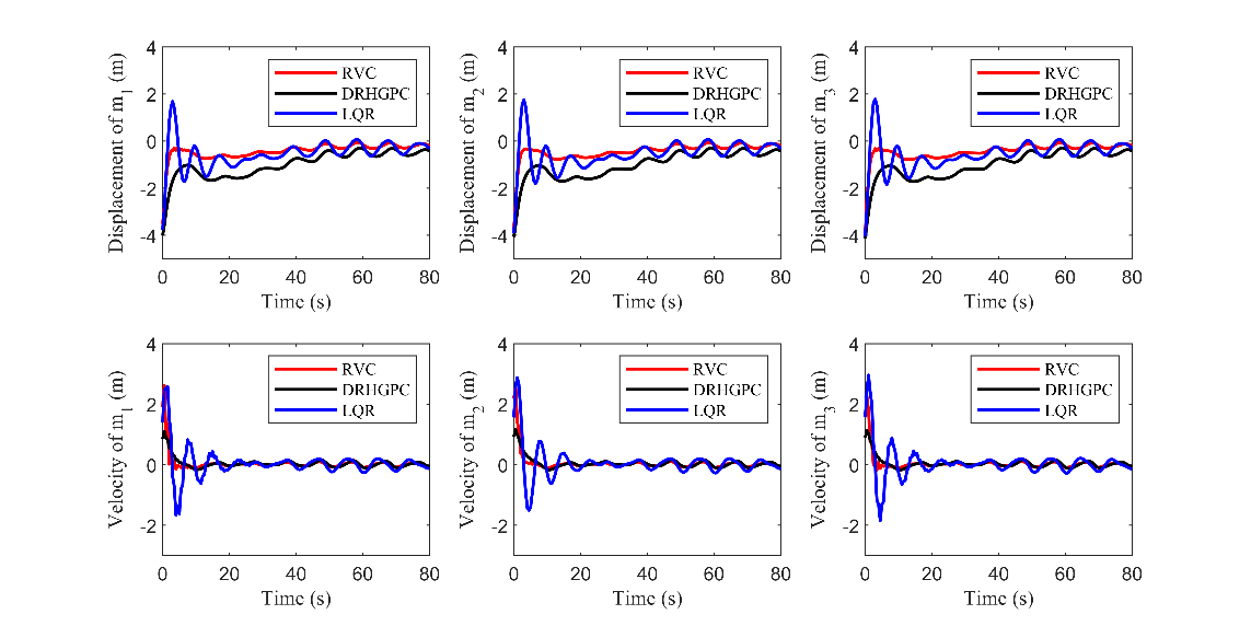 圖1 RVC與DRHGPC、LQR控制下的立管反沖的位移與速度