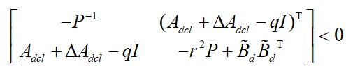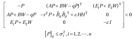 隨后,使用極點(diǎn)配置技術(shù)將閉環(huán)系統(tǒng)的極點(diǎn)約束在復(fù)平面的指定區(qū)域D(q,r)內(nèi),以獲得理想的動態(tài)響應(yīng)。同時,基于方差約束理論,通過求解線性矩陣不等式(LMI)獲得閉環(huán)系統(tǒng)的狀態(tài)反饋增益,從而實(shí)現(xiàn)穩(wěn)態(tài)方差的約束,確保系統(tǒng)的穩(wěn)態(tài)性能符合要求。所設(shè)計的LMI如下所示