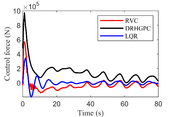 圖2 RVC與DRHGPC、LQR控制下的立管反沖的控制力U