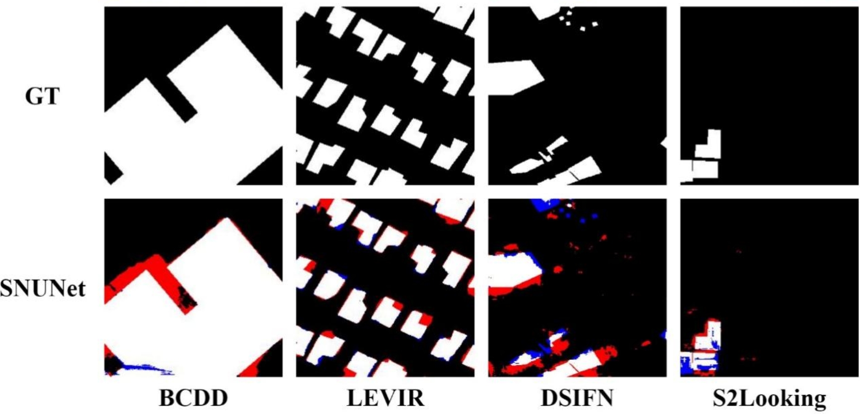 表1 SNUNet在四個數據集上預測結果中假陽性樣本和假陰性樣本的數量統計