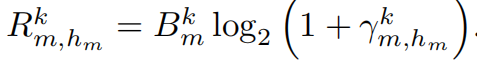 蜂窩用戶un選擇k信道的數據傳輸速率為: