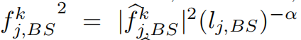 用戶與基站(BS)之間的信道增益可表示為: