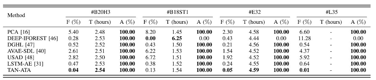 本文提出了一種具有自適應閾值調整的時間注意網絡(TAN-ATA)用于解決潛油電泵的異常檢測問題。通過時間注意力模塊(TAN)對多變量非線性動態過程進行建模,并利用自適應閾值調整模塊(ATA)平衡因狀態波動引起的頻繁誤報問題。實驗結果表明,TAN-ATA異常檢測模型在實際工業應用中展現出有效性和優越性。
