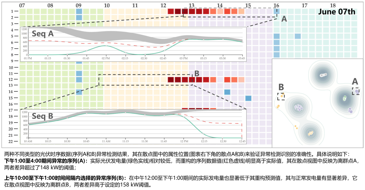 圖 4 光伏時序數據(序列A和B)異常檢測示意圖