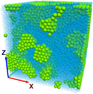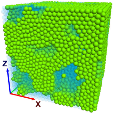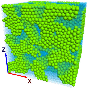 三維Voronoi網格結構表現為填充整個模型空間的三維多面體的集合,多面體間不存在重疊或間隙,且三維多面體可充分體現礫石的幾何特征,是構建礫巖等類多晶材料的理想構型。此外,利用三維Voronoi網格結構可構建任意礫石含量的礫巖模型,彌補了傳統隨機生成礫石方法的不足。圖1為不同礫石含量DEM礫巖數字模型。