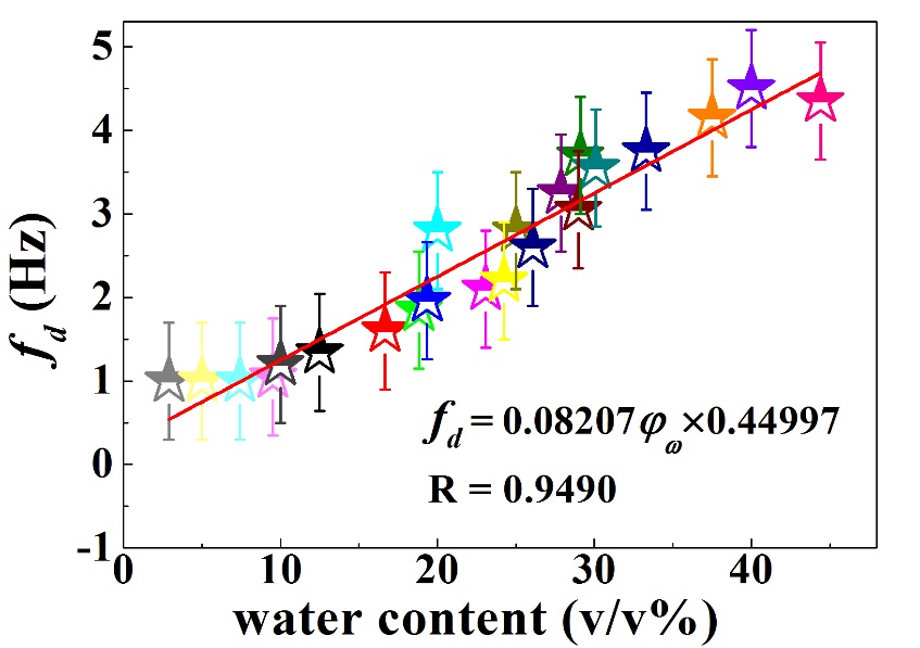 圖3 乳狀液擴散頻率fd隨含水率的變化趨勢