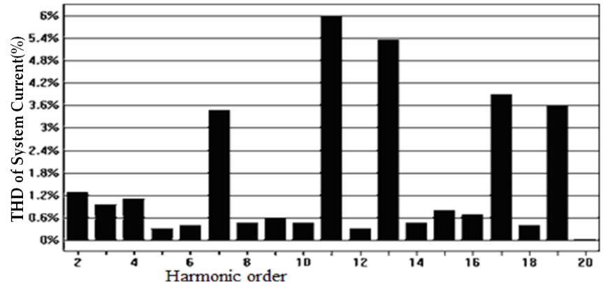通過66KVA的APF驗(yàn)證理論的正確性。由圖6可知,投入APF后,各次諧波均明顯降低。
