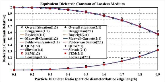 圖1 使用用不同方法對混合物等效電性的計算結果
