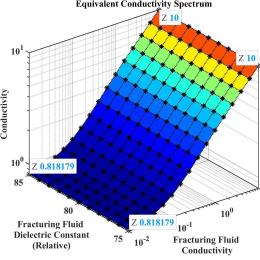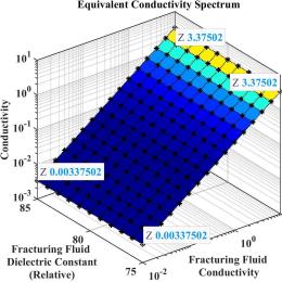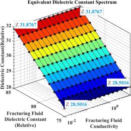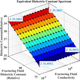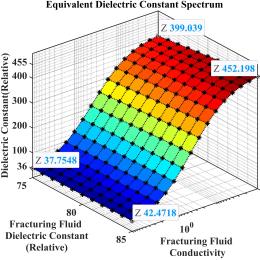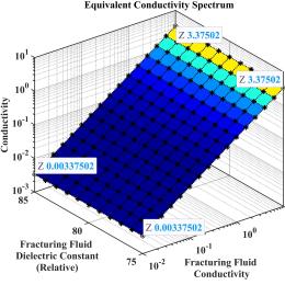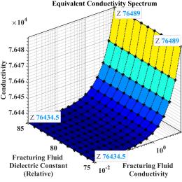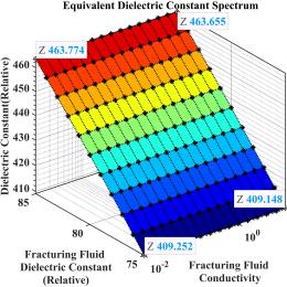 裂縫填充物的模擬表明,當使用高電導率支撐劑時,裂縫內容物的電性表現出對壓力的敏感性,因為壓力會改變支撐劑顆粒之間的接觸面積,等效電導率隨著壓力的增加而增加并達到恒定值。這一現象與Torres Verdín,C.獲得的實驗曲線趨勢一致。值得注意的是,盡管可以觀察到裂縫內容物的低頻介電增強現象,但它與使用常用混合計算理論在低頻下計算的結果不符。本研究的附帶數據已存儲在IEEE數據庫中。IEEE數據端口:https://dx.doi.org/10.21227/mz6a-ax33