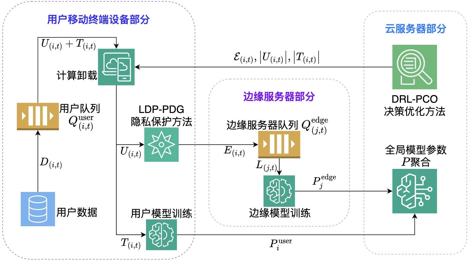 雖然近些年聯邦學習已經成為了隱私保護機器學習的主流選擇,但用戶設備的計算性能限制了它的使用場景。為了在減輕用戶設備的計算壓力的同時保護用戶隱私,本文提出了一個結合移動邊緣計算的分布式機器學習系統。同時,本文設計了一個基于本地差分隱私的隱私保護算法與一個基于深度強化學習的任務卸載算法,能同時增強隱私與效率。最后,本文通過實驗證明了本文算法的性能,它在計算性能與用戶設備能耗中取得了較好的平衡。
