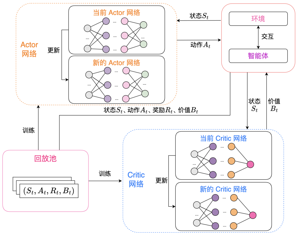 為了優(yōu)化上述分布式機器學習系統的性能,本文針對移動邊緣計算中的任務卸載問題提出了一種基于深度強化學習的優(yōu)化算法(DRL-PCO),通過Actor與Critic的雙網絡方式學習知識。該算法的架構圖如圖3所示。
