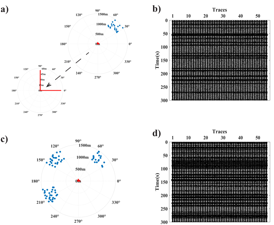 (a)和(b)單主導噪聲模型和合成記錄; (c)和(d)多主導噪聲模型和合成記錄