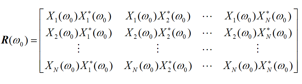 將線陣分成若干組,分別計算每組子陣列的空間相關矩陣,對所有子陣的空間相關矩陣取平均,得平滑后的空間相關矩陣: